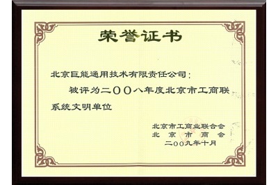 2008年被北京市工商業(yè)聯(lián)合會北京市商會評為2008年度北京市工商聯(lián)系統(tǒng)文明單位