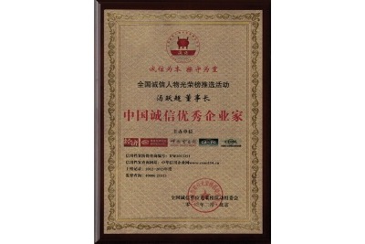 2013年我公司董事長湯躍超先生在全國誠信單位光榮榜活動(dòng)組委會(huì)舉辦的“全國誠信人物光榮榜推選活動(dòng)”中被評(píng)為《中國誠信優(yōu)秀企業(yè)家》,特頒發(fā)此證。