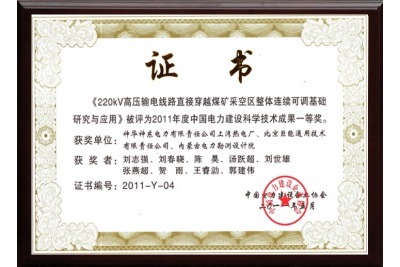 2011獲電力建設(shè)科學技術(shù)成果一等獎,各類獎項,各類認同,這是對我們的信任,也是我們的動力來源